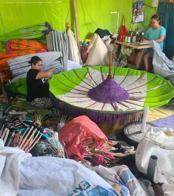 Ook de Balinese parasols is weer prachtig handwerk. Deze nemen we dan ook elk jaar wel mee. Mocht de kleur die u graag wilt er nu niet bij zitten of is er een parasol waarvan u weet dat ze deze ook op Bali verkopen, zoals de Macramé parasol, neem gerust contact op!