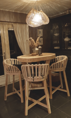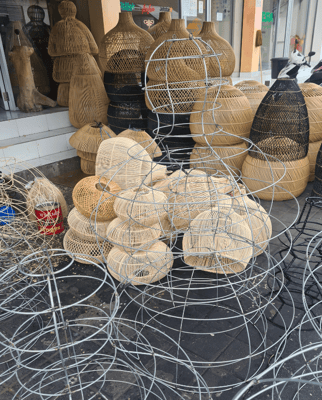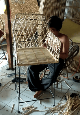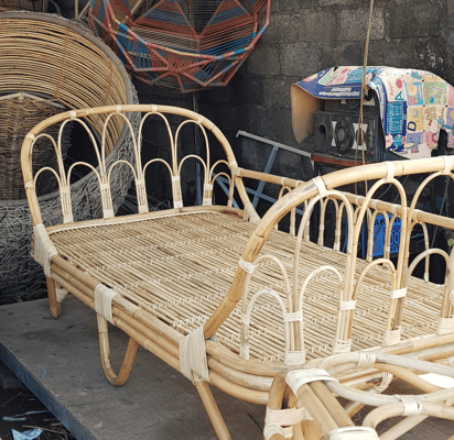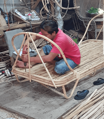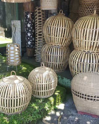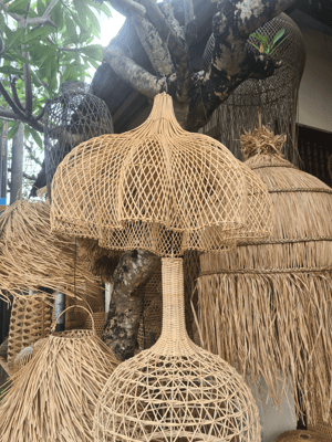 Zo hebben we diverse rotan/bamboe meubels en lampen laten maken.