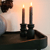 Deze prachtige zwarte kandelaars zijn van hout en hebben een prachtig robuust karakter.